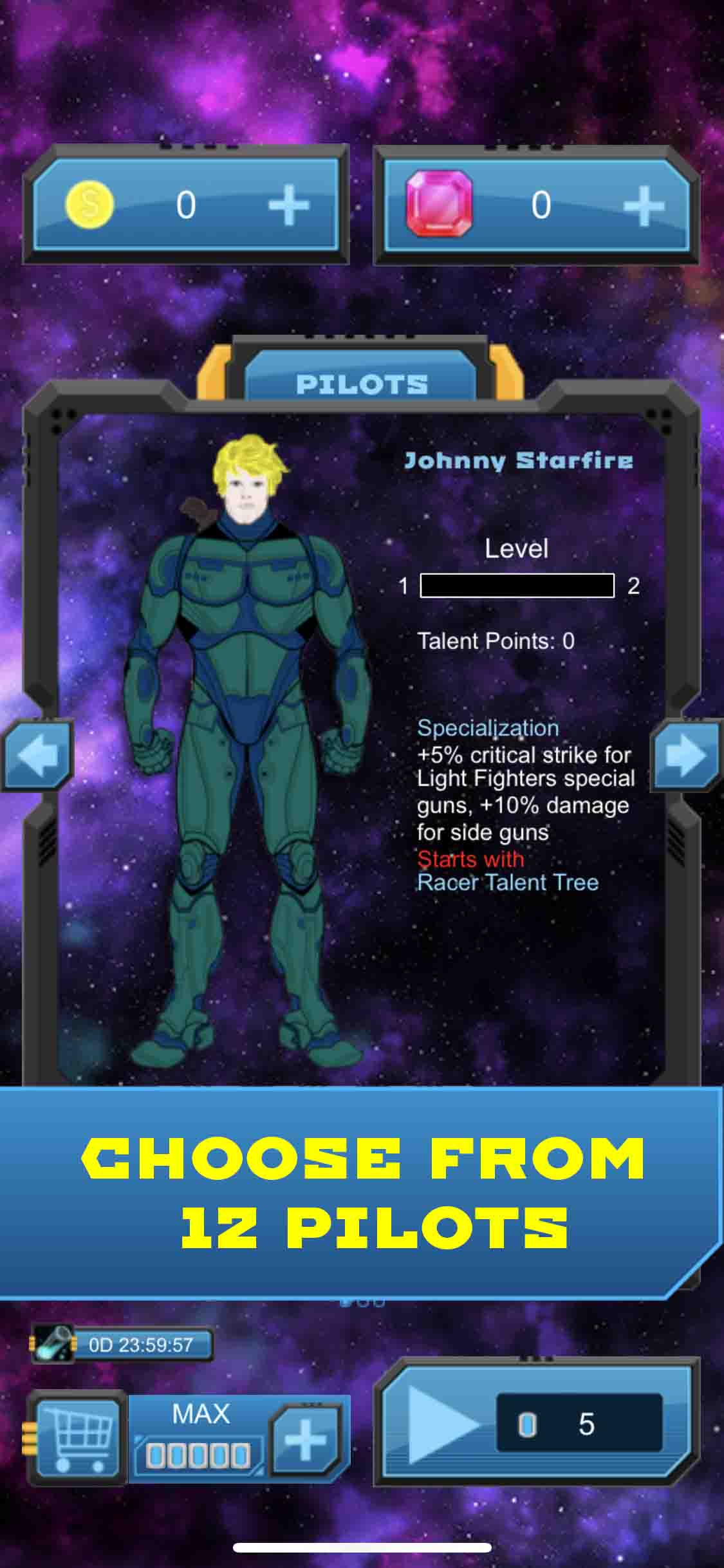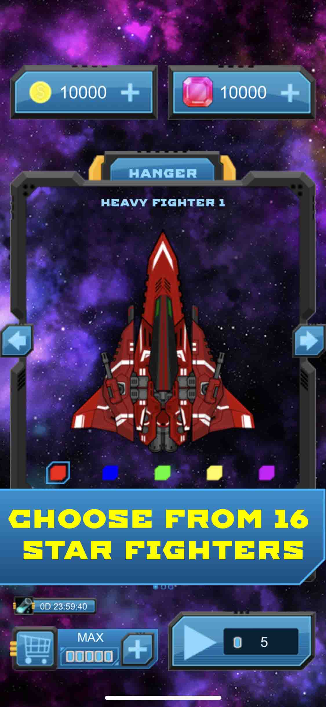 - Choose from 16 different star fighters feature Light Fighters, Void Defenders, Ion Fighters, Destroyers, Plasma Fighters, Void Fighters and Heavy Fighters
